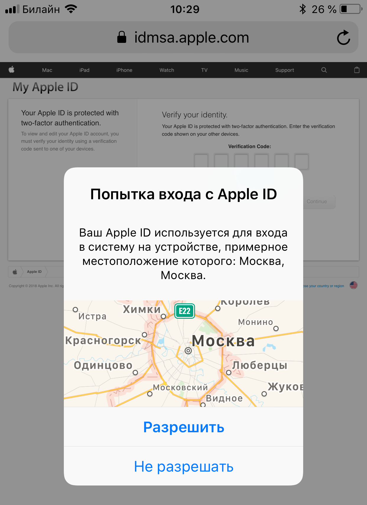 Устройство запросит числовой код. Гаджет пришлёт вам его в виде пуша: