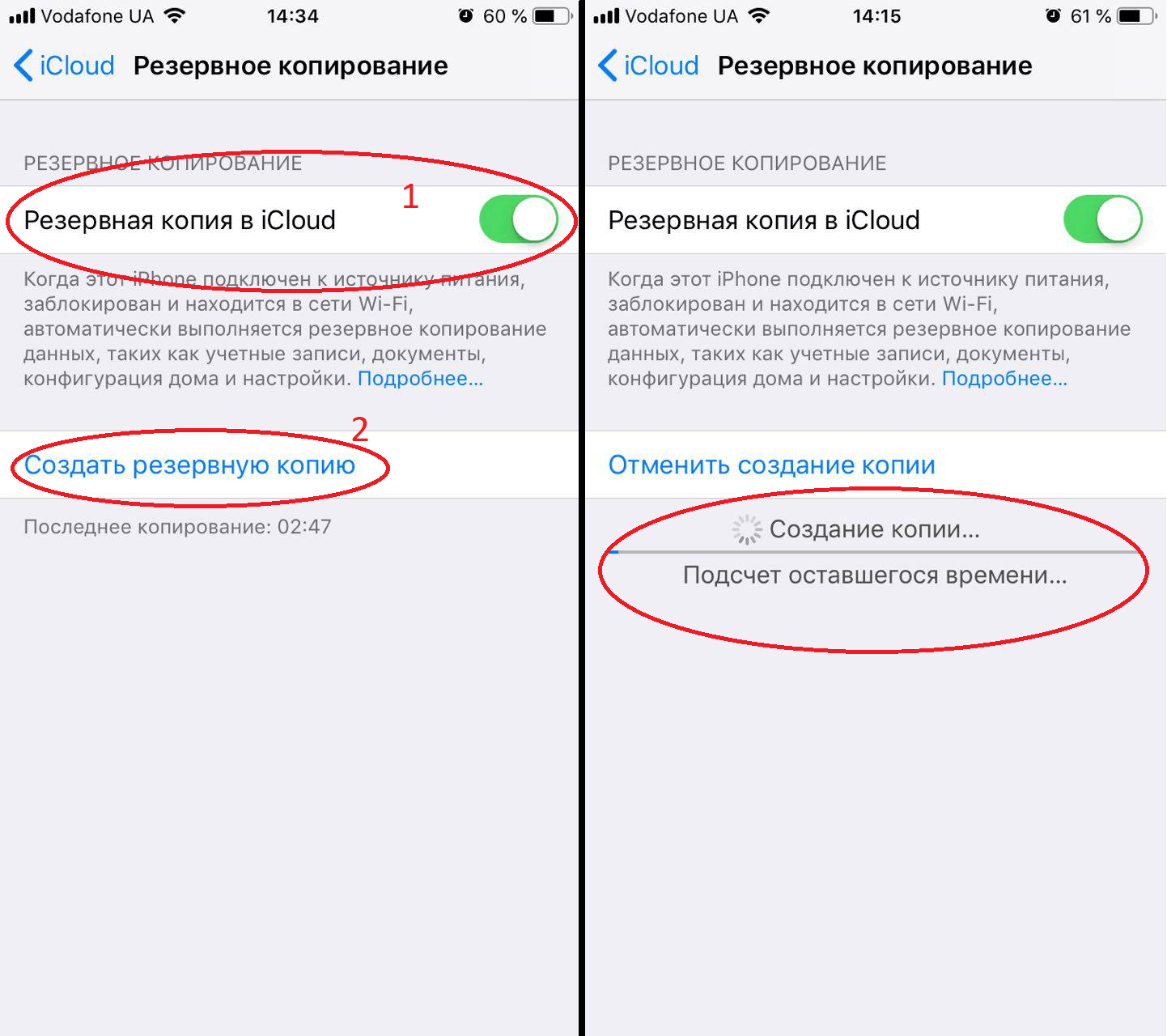 Вы можете выполнить резервное копирование в iCloud или iTunes или и то, и другое.