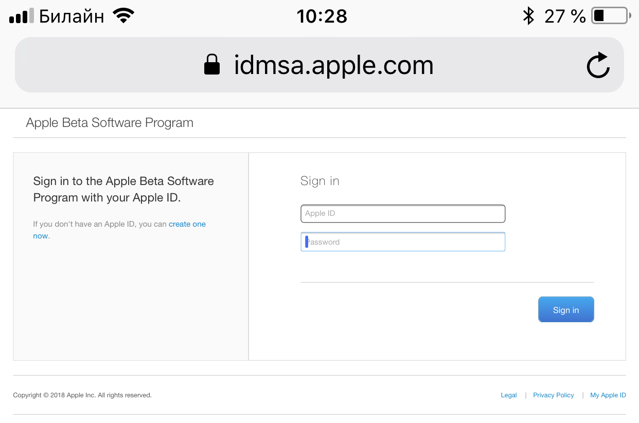 1. Зайти на специальную страницу сайта beta.apple.com;