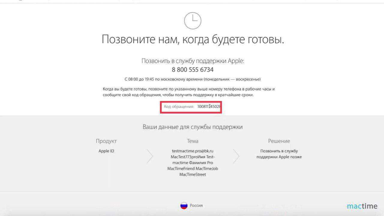 - Если вы решите самостоятельно позвонить в поддержку, то запомните код обращения, который будет указан на странице для того, чтобы сотрудник компании смог понять по какому именно вопросу вы обратились.
