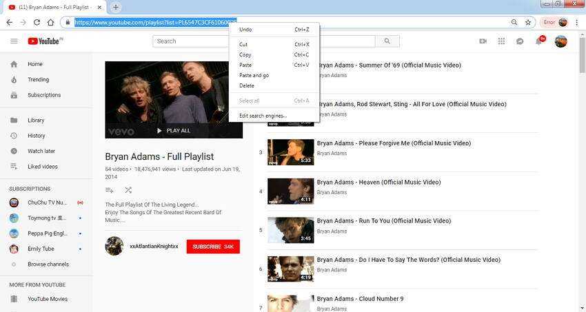 В браузере ПК/Mac откройте плейлист YouTube, который вы хотите загрузить, и скопируйте его URL-адрес.