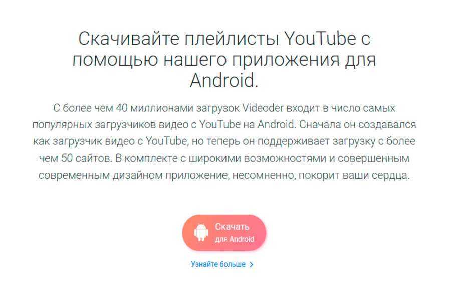 Если вам не нравится смотреть ролики в онлайн-режиме, ознакомьтесь еще с несколькими приложениями, как скачать плейлист с ютуба на телефон или иное устройство