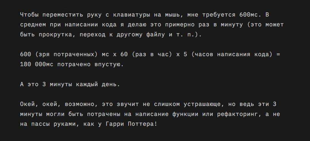 Немного привыкнув, ты уже можешь кое-как прыгать между режимами и вводить эти странные хоткеи — они даже начинают казаться тебе удобными, но один вопрос все-таки тебя не покидает: