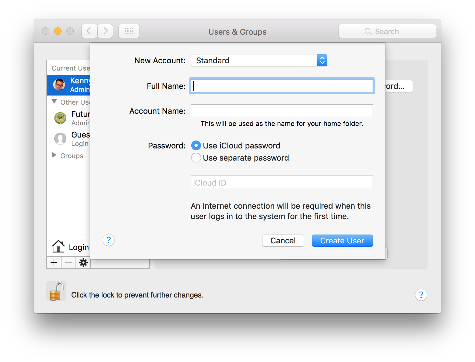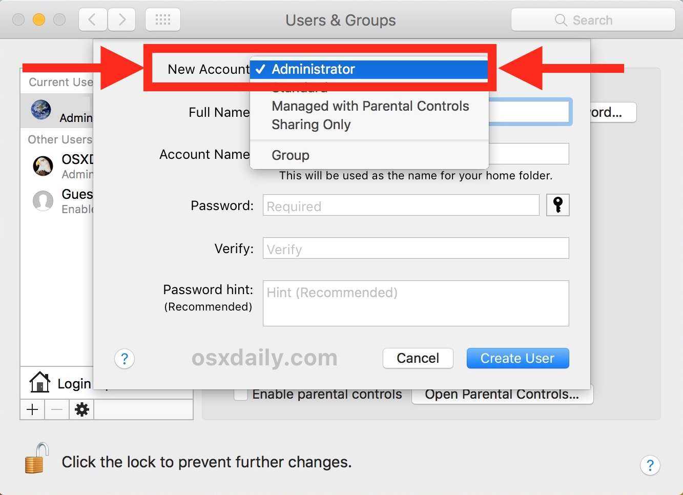 Обратите внимание, что на каждом Mac всегда должна быть хотя бы одна учетная запись администратора. По умолчанию при настройке нового Mac эта учетная запись пользователя по умолчанию является учетной записью администратора