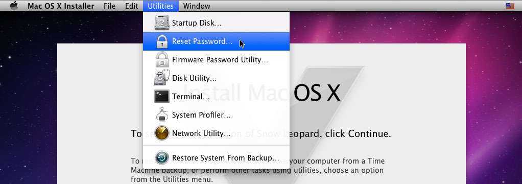 С помощью установочного диска. Отличный вариант, если вы хотите сделать сброс пароля на макбуке, не боясь переустановки операционной системы. Например, вы его только приобрели или он достался от какого-то родственника. В данном варианте вам понадобится установочный диск, его можно попросить у знакомых или того же продавца.