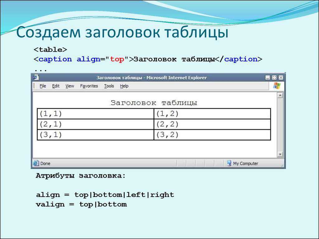 Для добавления заголовка таблицы необходимо указать тег th>.