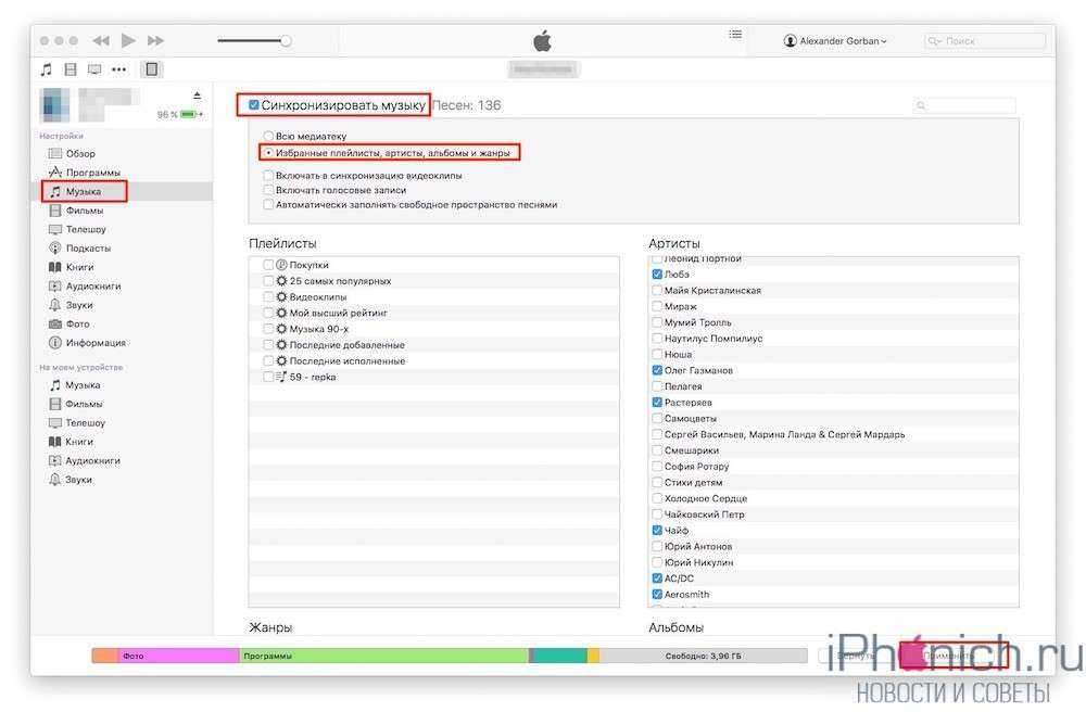 , чтобы синхронизировать музыку на Айфон через Айтюнс.