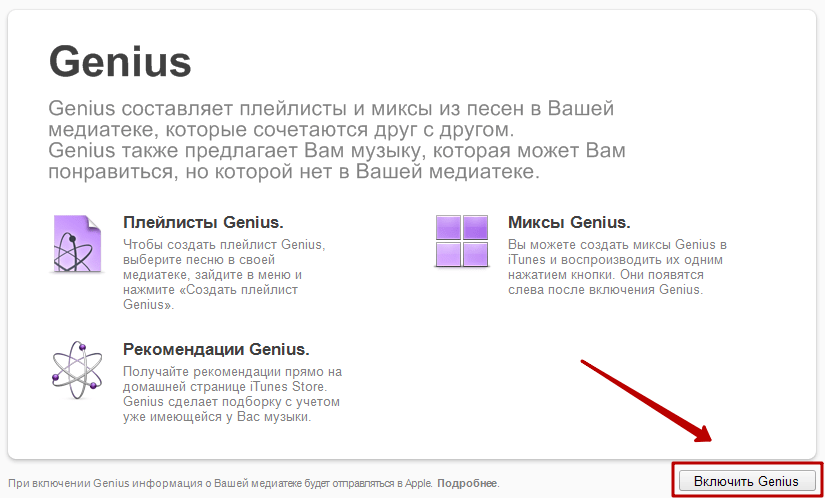 Если вы не хотите создавать плейлист вручную, поручите эту работу iTunes, активировав функцию Genius (Файл – Медиатека – Включить Genius). Доступно три способа использования функции: