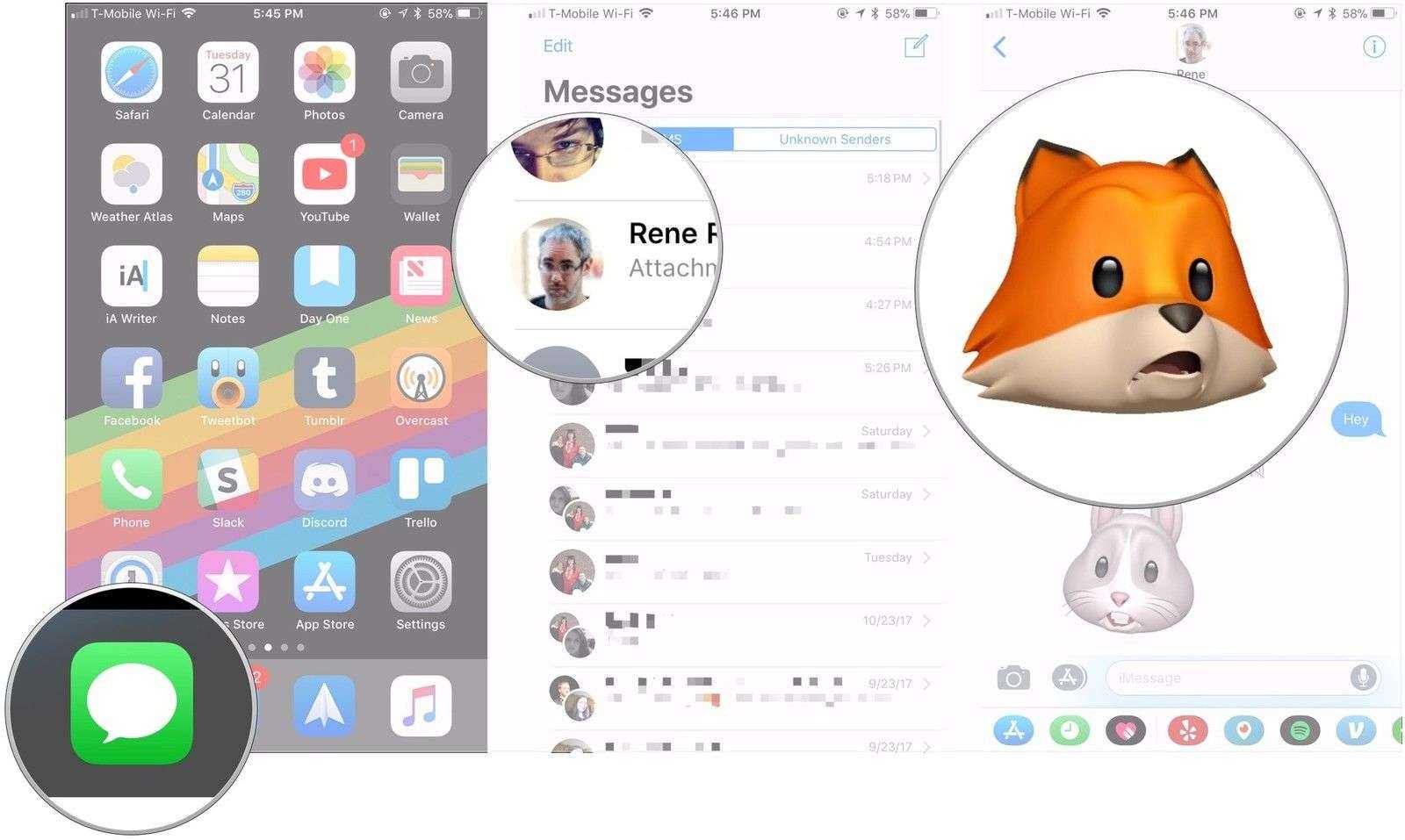 Шаг 3. Выберите беседу, а затем нажмите значок Animoji в панели приложений iMessage.