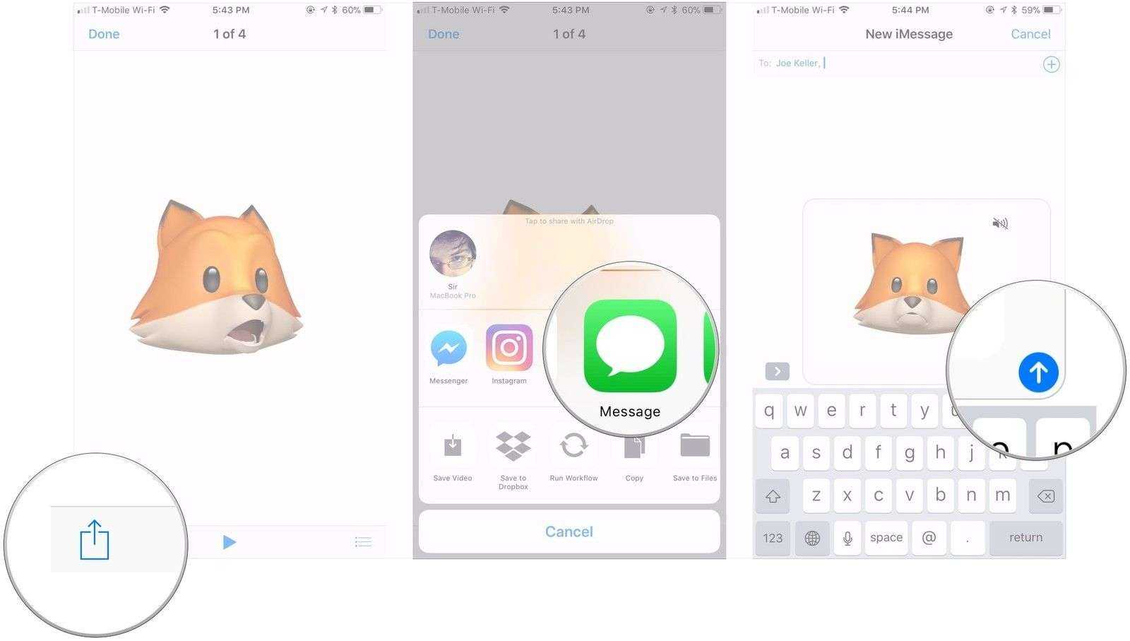 Как поделиться сохраненным Animoji из вашей камеры Roll