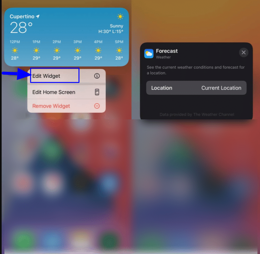 — когда появится раскрывающееся меню, нажмите «редактировать виджет».