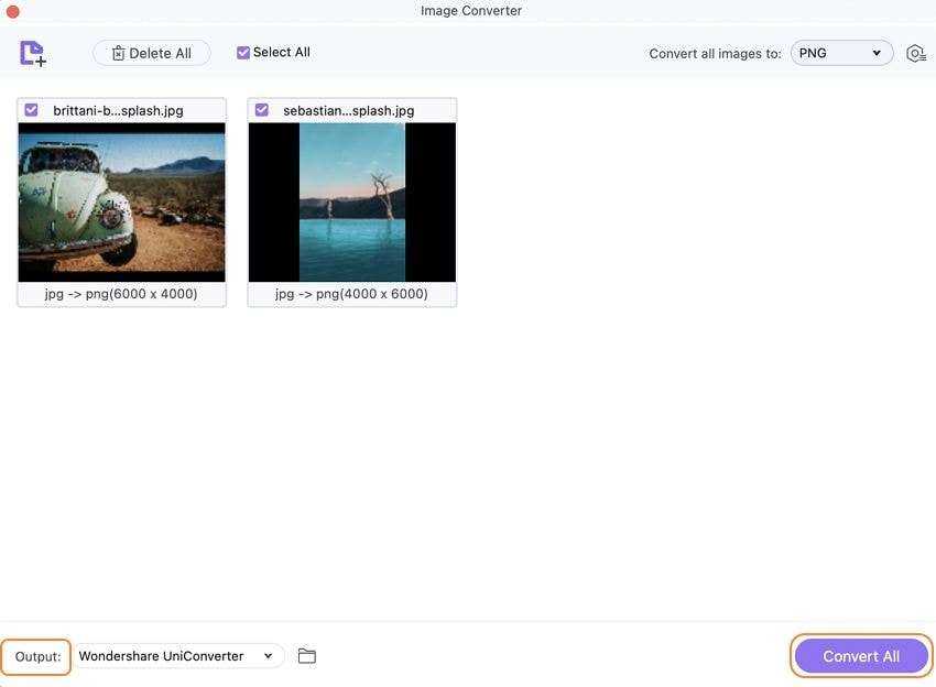 Откройте меню Преобразовать все изображения в и выберите необходимый формат. Наконец, нажмите «Конвертировать», чтобы начать изменять размер изображений с помощью Wondershare UniConverter.