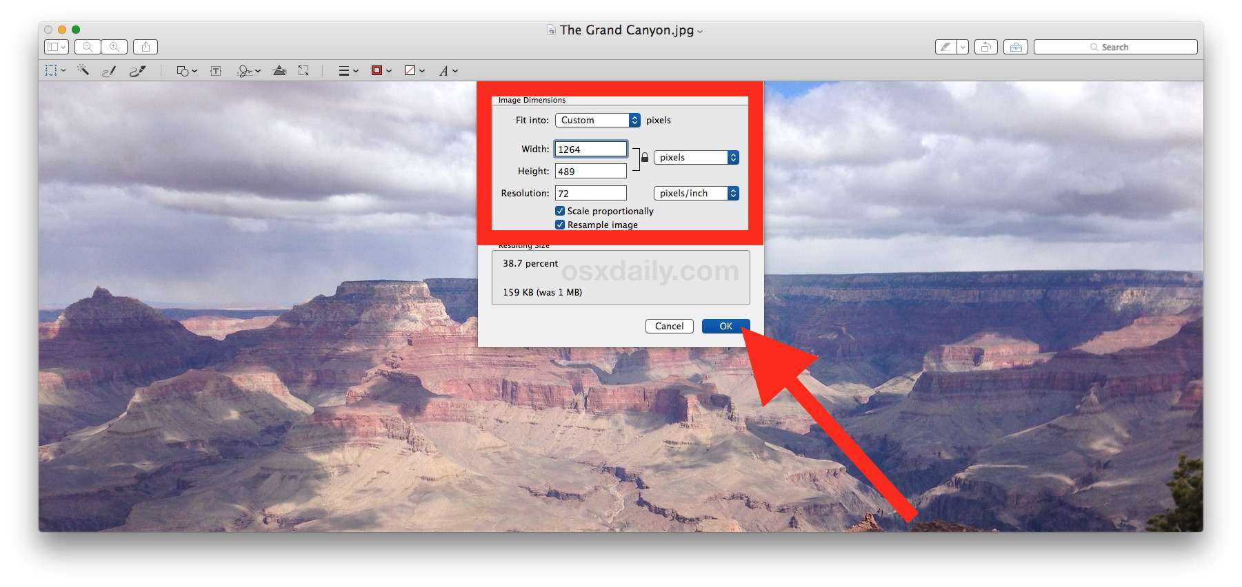 Этот метод работает, чтобы изменить размер изображения в каждой версии MacOS или Mac OS X, когда-либо выпущенной, поскольку с самого начала Preview был отправлен с Mac. Видео ниже демонстрирует изменение размера изображения в Preview для macOS Sierra, но оно существует в El Capitan, Yosemite, Mavericks, Snow Leopard, Tiger и многом другом: