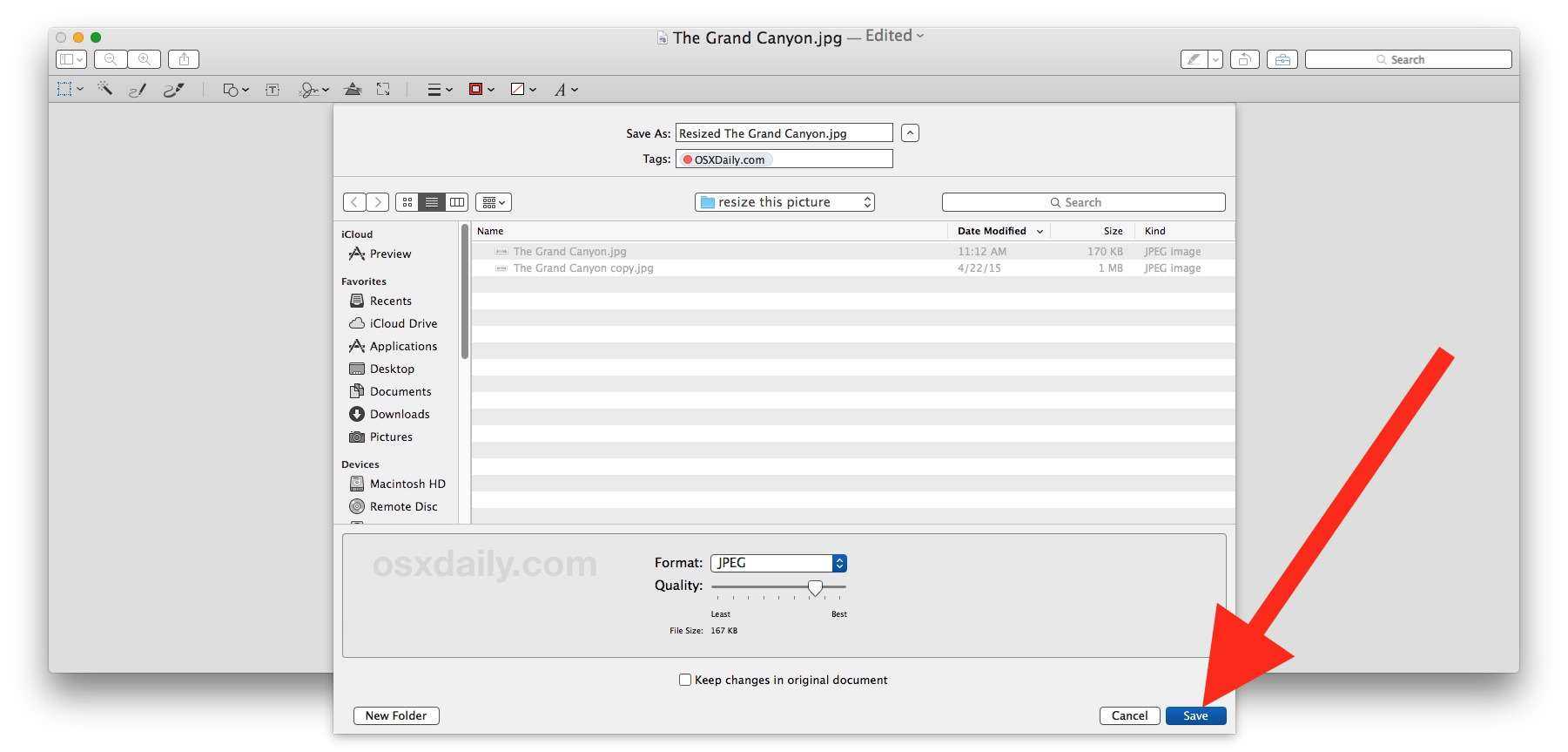 Недавно измененное изображение будет сохранено в Mac Finder, или это будет старый файл, если вы сохранили его поверх существующего изображения.