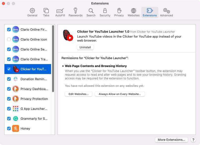 Однако шаги по включению или отключению расширений Mac очень просты; Вы должны делать это каждый раз, когда у вас есть новые расширения для использования в браузере.