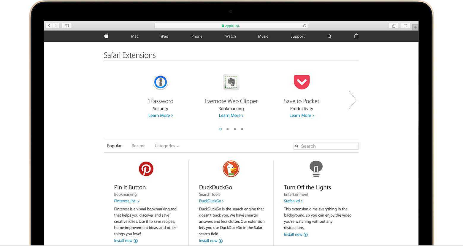 Расширения могут быть загружены и установлены с помощью браузера Safari. Это добавляет функции, изменяет внешний вид и упрощает использование определенных веб-страниц.