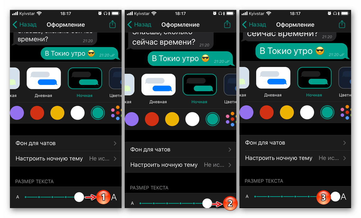 Подберите оптимальную величину шрифта, ориентируясь на его отображение в области предпросмотра либо же открыв основной интерфейс или один из чатов.