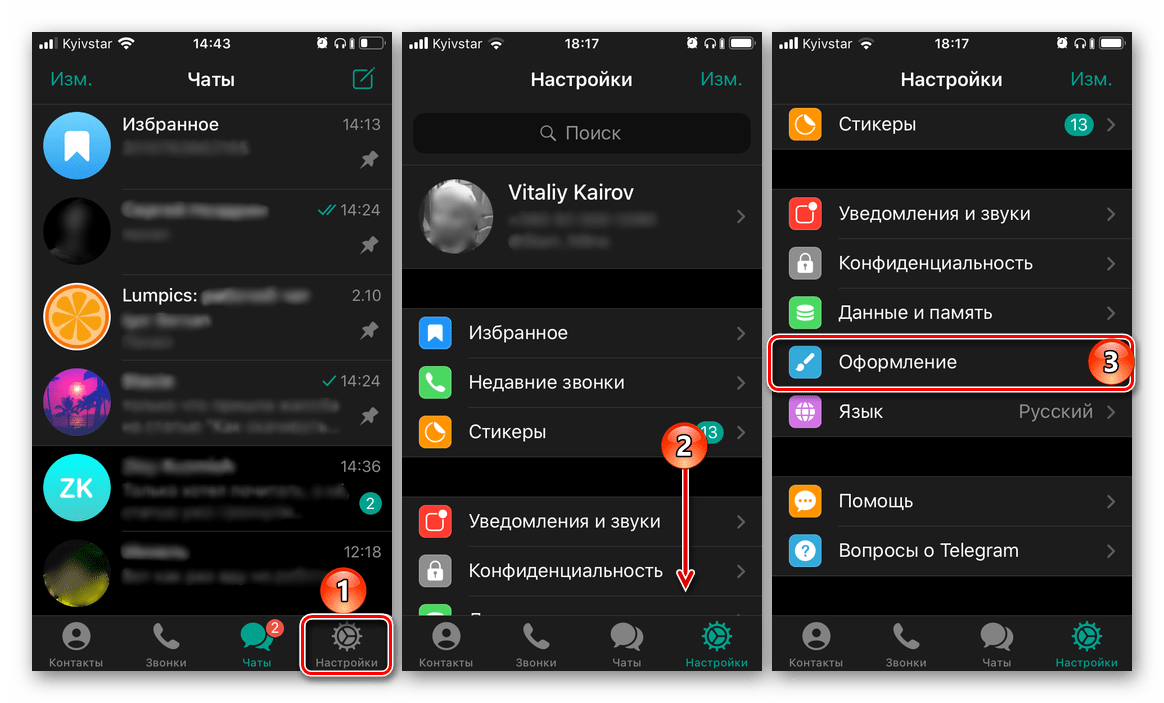 - Запустив приложение, перейдите во вкладку «Настройки», а затем к разделу «Оформление».
