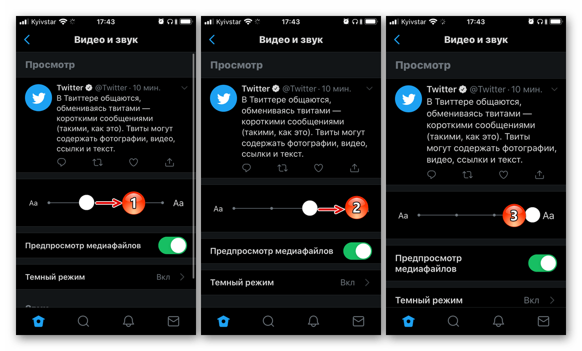 Пролистайте немного вниз список доступных опций, после чего в блоке «Размер текста» перемещайте вправо ползунок, аналогичный таковому во всех рассмотренных выше случаях.