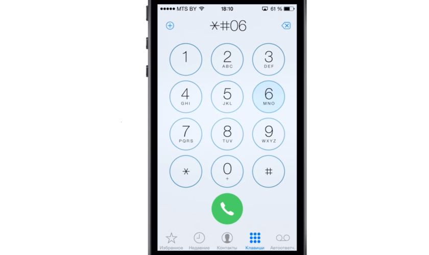 3. Как показано на рисунке выше, введите *#06# – вам не нужно нажимать зеленую кнопку вызова; он просто зарегистрируется автоматически.