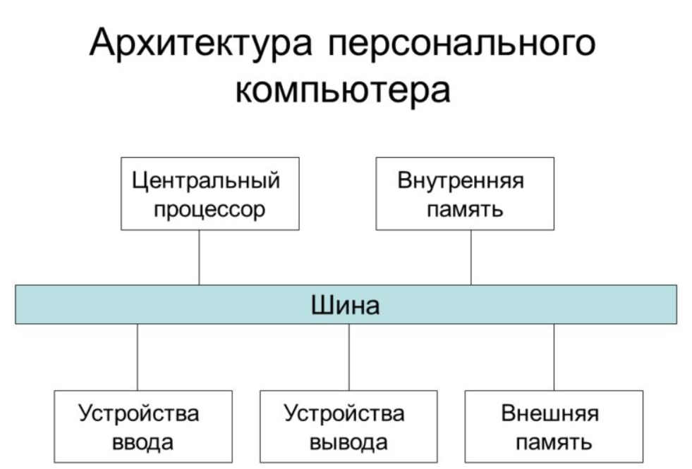 Любой компьютер представляет собой связанную совокупность: процессора, памяти и устройств ввода-вывода.