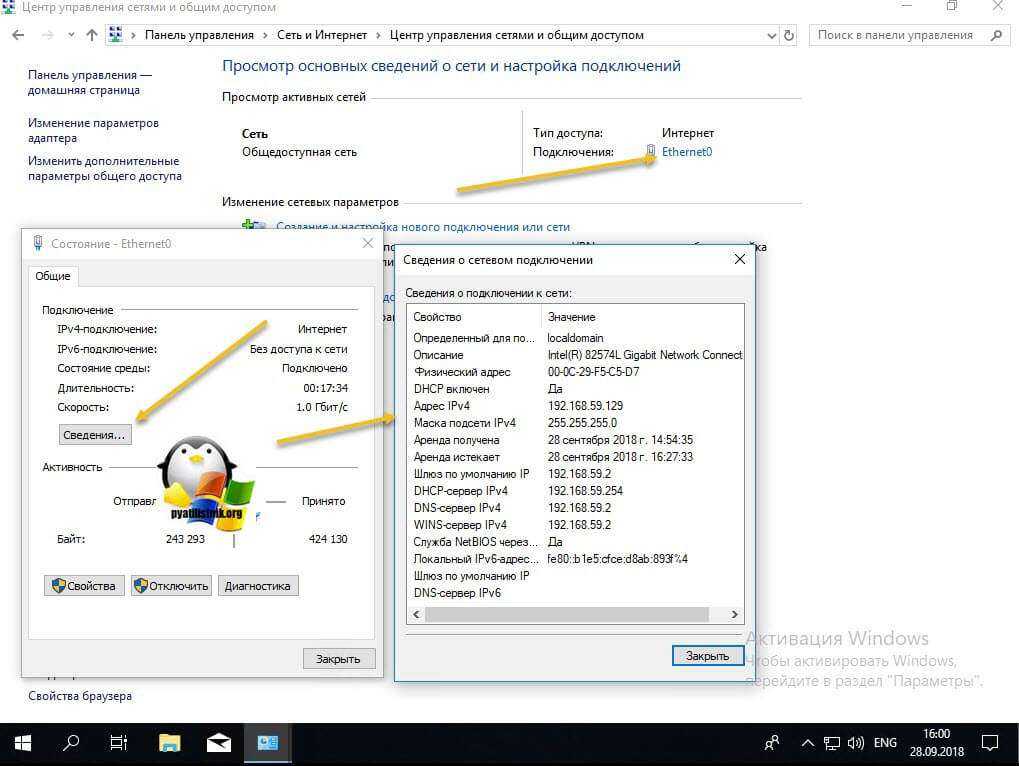 Этот метод определения айпи адреса компьютера с Windows ОС, заключается в использовании оснастки «Центр управления сетями и общим доступом», это классический инструмент, который наверняка многие из вас знают и уже использовали.