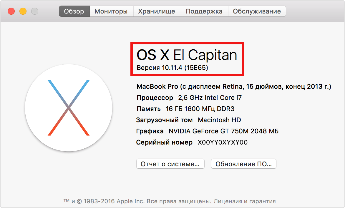 - Откроется новое окно, на котором будет версия Mac OS, установленная на вашем компьютере.