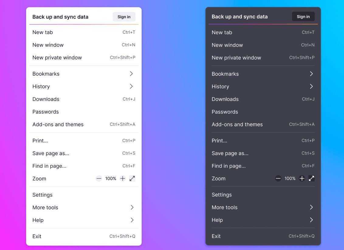 Основное меню браузера, вызываемое кнопкой с тремя полосками в правом верхнем углу интерфейса, получило радикальные изменения. Разработчики сильно упростили его, убрав все редко используемые элементы. Той же участи удостоились и устаревшие пункты.