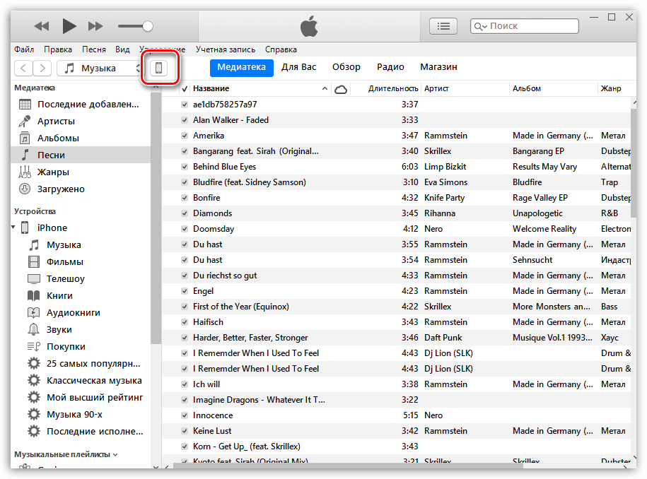 Чтобы изменения отобразились на iPhone, необходимо выполнить синхронизацию. Нажмите на значок устройства в окне iTunes и кликните «Синхронизировать». Можно использовать другой способ:
