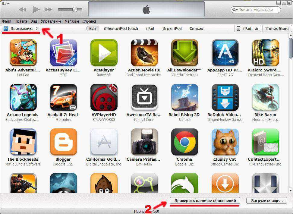На компьютере в окне iTunes отобразится список программ, установленных на iPhone. Нажмите на кнопку «Проверить наличие обновлений» – она находится на нижней панели. Если для приложения доступны апдейты, появится соответствующее окно. Если обновлений нет, ничего не произойдет.