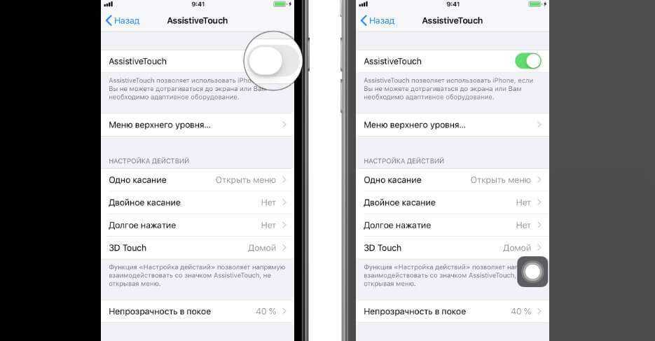 Выключать Айфон 11 Про или обычный iPhone 11 придется альтернативным способом, который подразумевает использование наэкранной кнопки Assistive Touch. Сначала нужно активировать данную опцию. Для этого перейдите по пути «Настройки» – «Основные» – «Assistive Touch». Здесь следует передвинуть вправо ползунок, расположенный напротив одноименного пункта меню.