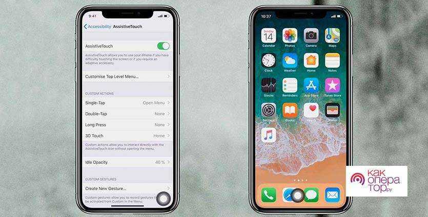 При помощи меню AssistiveTouch можно создать виртуальную кнопку для перезагрузки смартфона.