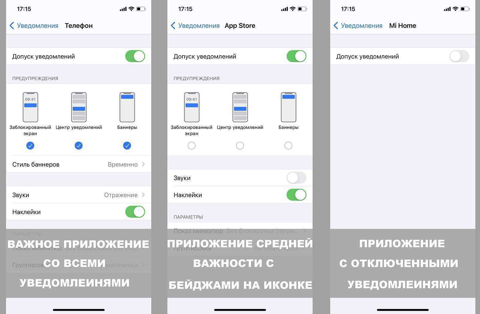Для важных приложений оставляйте нужные уведомления, можете настроить только баннеры на экране блокировки, записи в центре уведомления или вовсе включить постоянное отображение уведомления до реакции пользователя. Так не пропустите сообщение в самых важных для вас программах.