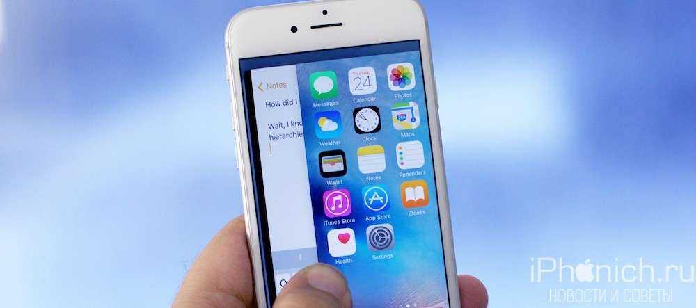 Для того, чтобы попасть в диспетчер запущенных приложений, нужно дважды нажать на физическую кнопку Home. Для того, чтобы полностью закрыть одно из приложений, нужно сделать по нему свайп вверх — приложение будет закрыто.