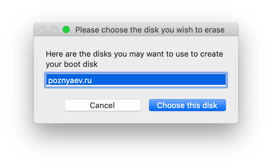 ». В следующем окне выберите вашу флешку, и нажмите кнопку «Choose this disk