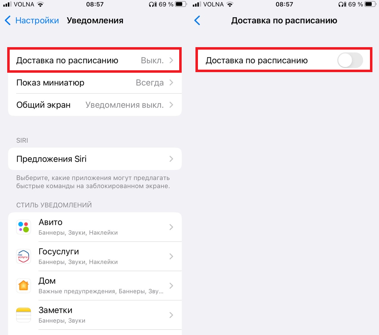 - Выберите пункт «Доставка по расписанию» и отключите функцию.
