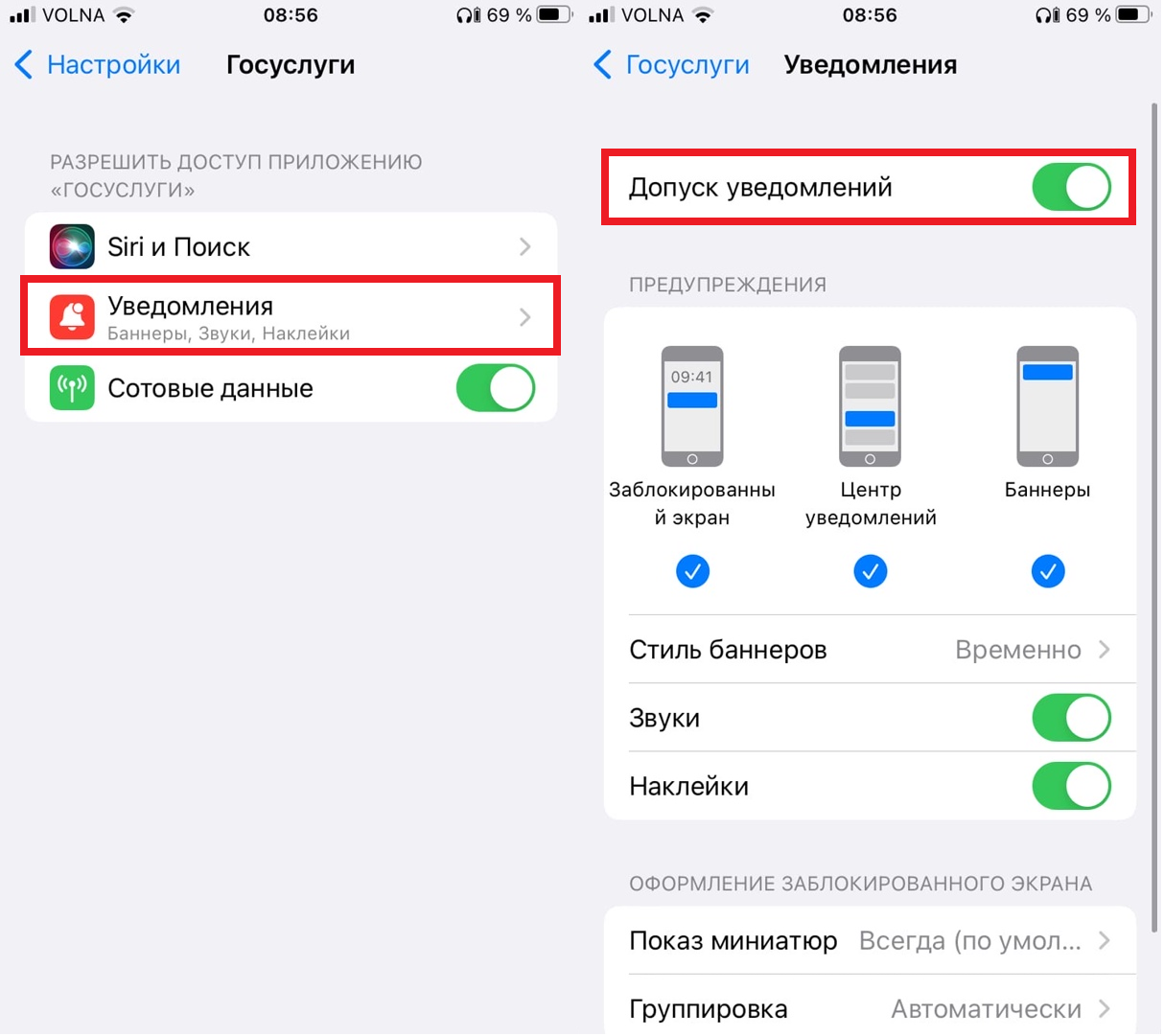 А, во-вторых, выберите приложение от которого вы не получаете уведомлений в меню «Настройки» → «Уведомления» и убедитесь в том, что переключатель «Допуск уведомлений» активен.