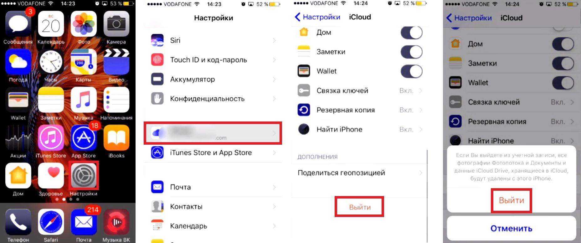 Отключение iCloud для повторного подключения