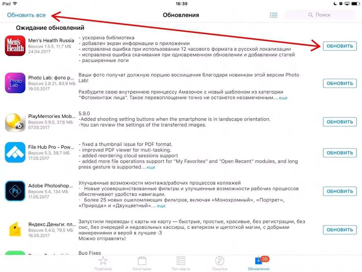 Обновление приложений с помощью iTunes