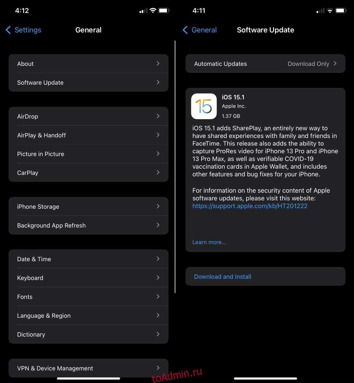 Откройте приложение «Настройки» на своем iPhone или iPad. Проведите пальцем вниз и коснитесь «Общие». Выберите «Обновление программного обеспечения». Нажмите «Загрузить и установить» в iOS 15. Если вверху отображается iOS 14.8, посмотрите внизу и выберите «Обновить до iOS 15», затем нажмите «Загрузить и установить». Следуйте инструкциям. закончить установку