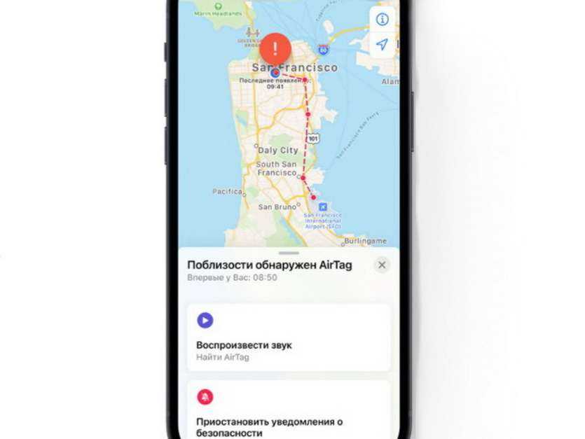 Если пользователь определенное время передвигается с не зарегистрированным в личном профиле брелке, для которого не включена опция пропажи, спустя указанный период «Локатор» его Айфон или Айпад отправит пуш-уведомление «Найден Air Tag, передвигается одновременно с вами».