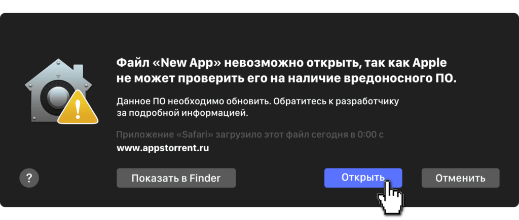 - Вы получите еще одно окно с предупреждением о том, что macOS не может подтвердить разработчика. Однако на этот раз в окне есть кнопка «Открыть«. Нажмите на нее.