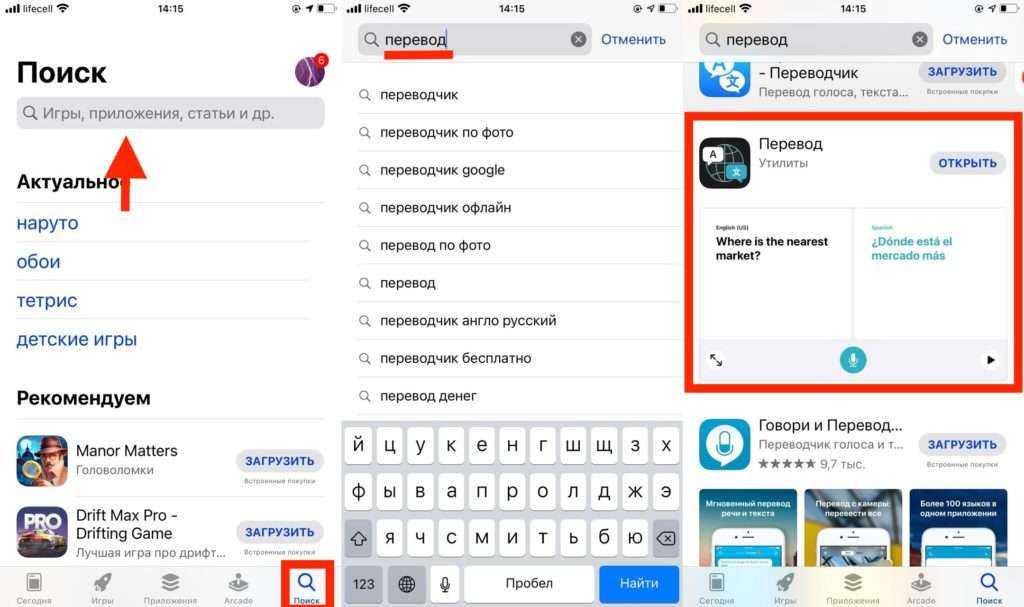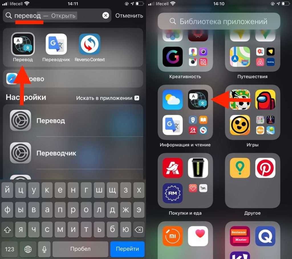 Поэтому сначала убедитесь, что его точно нет на вашем девайсе. Просто напишите «Перевод» в поиске Spotlight (свайпните рабочий стол вниз и тогда появится поиск).
