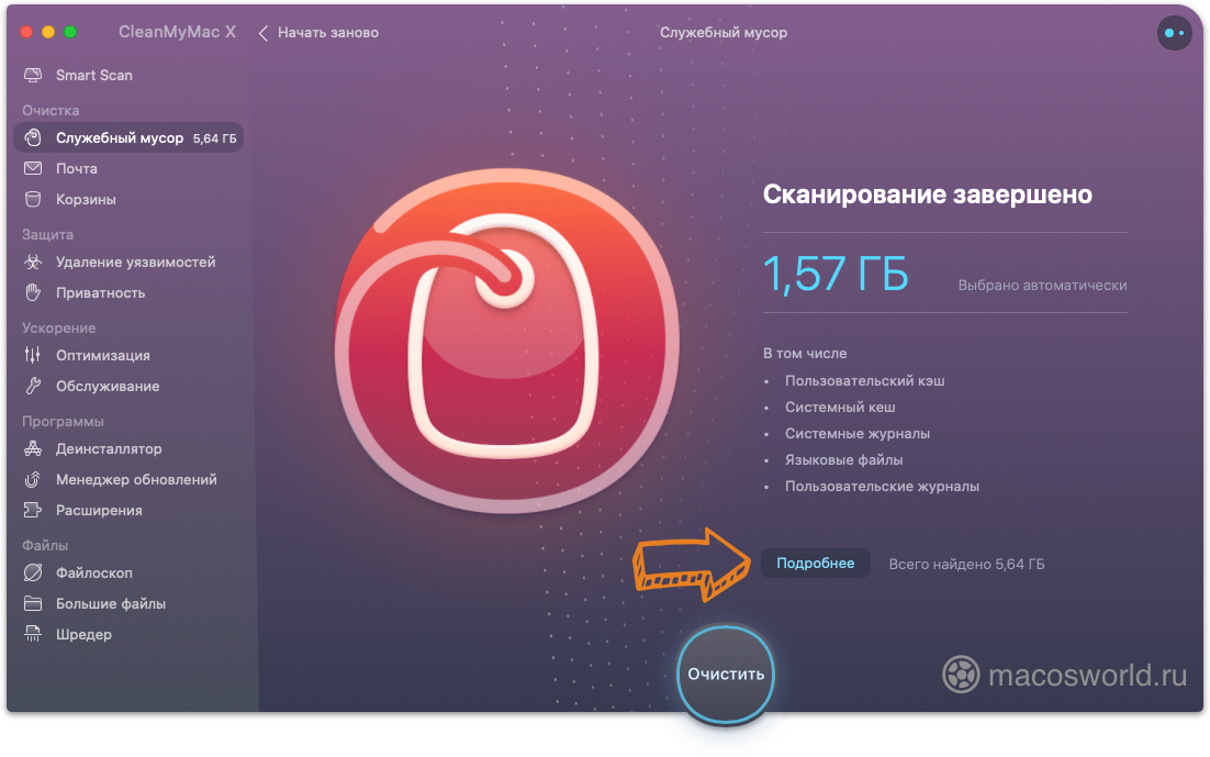 Служебный мусор: кеш, языковые пакеты, dmg-файлы