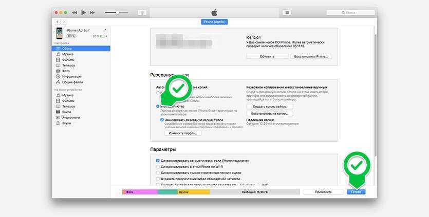 3. В разделе с подключенным устройством меняем способ создания резервной копии с iCloud на Этот компьютер и применяем изменения.