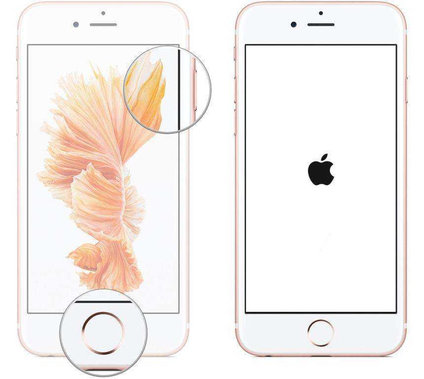 Для жесткой перезагрузки, нажмите кнопки Power и Home (в случае iPhone 7 вместо кнопки Home нужно нажать кнопку уменьшения громкости). Удерживайте их нажатыми около 10-15 секунд, пока смартфон не выключится полностью. Затем нужно отпустить кнопки и подождите пока операционная система загрузится. Этот способ поможет, даже в случае если система зависла намертво, или при включении горит яблоко и гаснет экран.