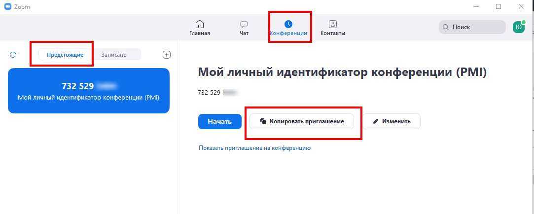 - Копируйте ссылку на веб-конференцию Zoom и отправьте ее через другой мессенджер. Еще один вариант — скопируйте идентификатор в деталях мероприятия и разошлите его любым удобным способом.