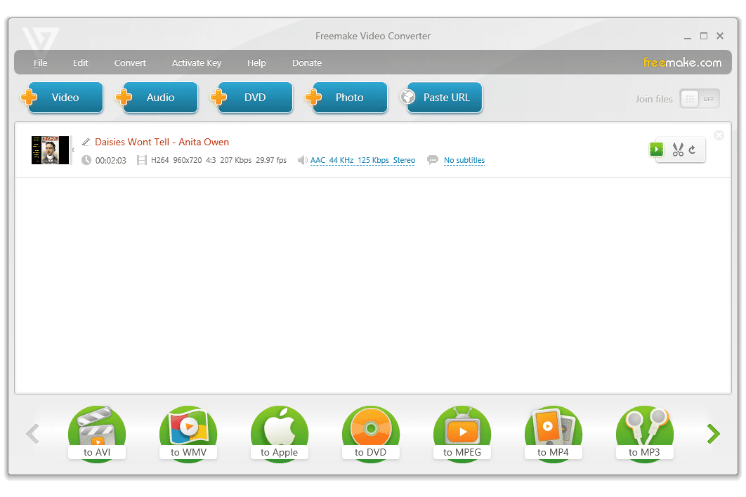 Freemake Video Converter — действительно простая в использовании программа. Просто загрузите один или несколько видеофайлов для преобразования в любой из выходных форматов.