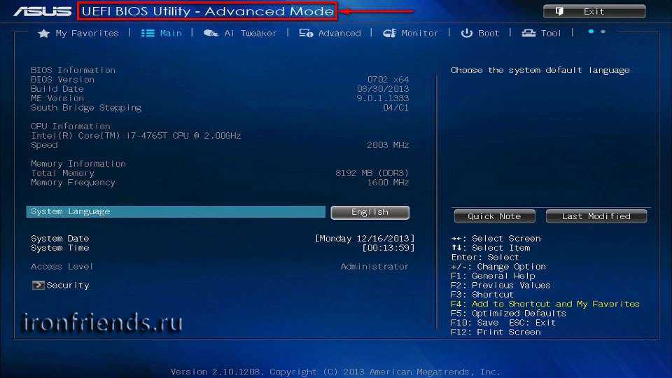 И последняя версия – новый BIOS UEFI. Выглядит по-разному – в зависимости от производителя материнской платы, установленной на ПК, или марки ноутбука.