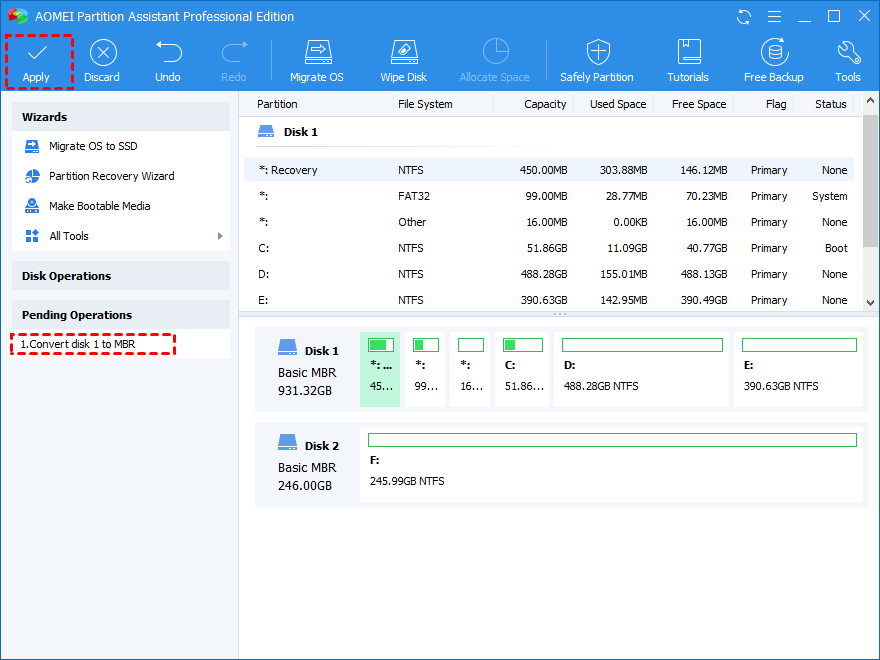 Step 3. You can preview the conversion under “Pending Operations”. In order to save the changes, please click “Apply” on the toolbar and wait for the process to be completed.
